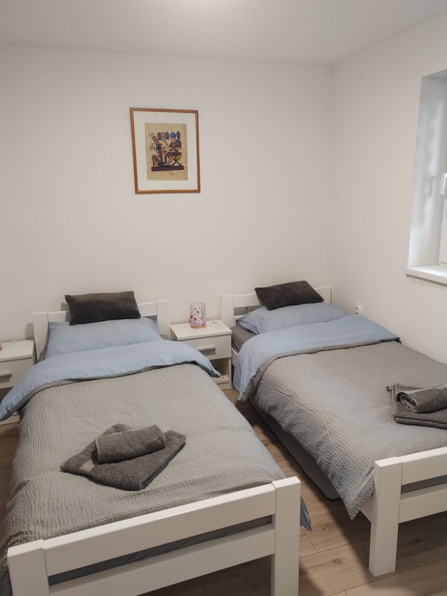 Smještaj u staroj tradicijskoj kući u Kopačevu, nadomak Parka prirode Kopački rit, obnovljenoj s puno ljubavi, spaja duh prošlih vremena s modernim komforom. U njoj se nalazi apartman s dva kreveta i dva pomoćna kreveta, te dvije sobe s ukupno četiri kreveta.